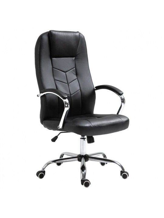 A3250 πολυθρόνα διαχρονική, διευθυντική με ρυθμιζόμενο ύψος που συνδυάζει ψηλή άνετη πλάτη δίνοντας αίσθηση πολυτέλειας στο χώρο σας, ενδεδυμένη με μαύρο PU. Διαθέτει σταθερά μπράτσα ενδεδυμένα και πόδι χρωμίου για μεγαλύτερη αντοχή.