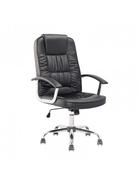 A3500 πολυθρόνα διευθυντική ξεκούραστη με άνετο κάθισμα σε μαύρο χρώμα PU.Τα μπράτσα του είναι χρωμίου ενδεδυμένα με μαύρο PU.Διαθέτει πόδι χρωμίου για απόλυτη αντοχή στο βάρος.Ιδανική για όλους τους χώρους.
