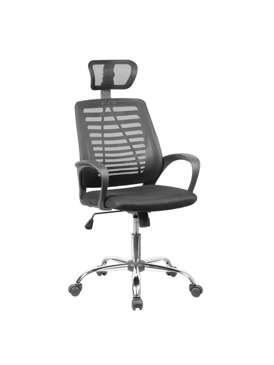 A4350 πολυθρόνα γραφείου σε μοντέρνα γραμμή με επένδυση από μαύρο mesh ύφασμα σε πλάτη για να αναπνέει το σώμα και προσκέφαλο για μεγαλύτερη άνεση.Πόδι χρωμίου για απόλυτη αντοχή στο χρόνο και ρυθμιζόμενο ύψος.