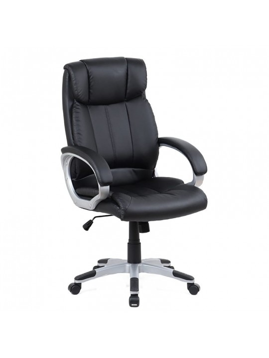 A9250 πολυθρόνα διαχρονική, διευθυντική με ρυθμιζόμενο ύψος που συνδυάζει ψηλή άνετη πλάτη δίνοντας αίσθηση πολυτέλειας στο χώρο σας,ενδεδυμένο με μαύρο PU. Διαθέτει σταθερά μπράτσα ενδεδυμένα και πόδι πολυπροπυλενίου.
