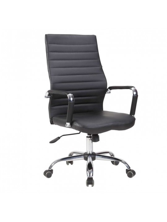 A9280 πολυθρόνα διευθυντική ξεκούραστη με ψηλή πλάτη με εντυπωσιακό σχεδιασμό σε χρώμα μαύρο PU και ρυθμιζόμενο ύψος. Έχει μπράτσα ενδεδυμένα και πόδι χρωμίου για απόλυτη αντοχή.