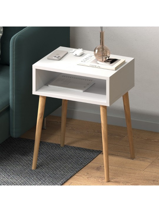 - Εκτός από την επιφάνειά του, όπου μπορείτε ν' ακουμπήσετε ό,τι επιθυμείτε, το κομοδίνο φέρει κι ένα ράφι ακριβώς κάτω από αυτήν.