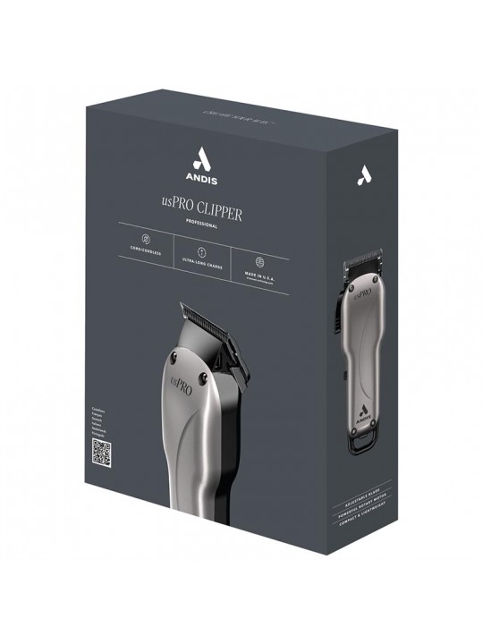 Η επαναφορτιζόμενη επαγγελματικη κουρευτική μηχανή US PRO της ANDIS διαθέτει περιστροφικό μοτέρ υψηλής απόδοσης, προσφέροντας 5500 κινήσεις το λεπτό για εξαιρετική αποτελεσματικότητα, ταχύτητα και ακρίβεια. Δαιθέτει λεπίδες από ανθρακούχο ατσάλι., διακόπτη on/off για εύκολη χρήση και είναι έως και 25% πιο ελαφρυά από την US PRO. Προσφέρει πλάτος κοπής 4.5 cm, με ρυθμιζόμενο μήκος κοπής (000-1mm) και ελάχιστο μήκος κοπής 0.5mm. Περιλαμβάνει 9 χτενάκια (1.5mm, 2.5mm, 3mm, 4.5mm, 6mm, 9.5mm, 13mm, 19mm, 25mm) και επαναφορτιζόμενη μπαταρία λιθίου με χρόνο φόρτισης 90 λεπτών και αυτονομία 120 λεπτών. Επιπλέον αξεσουάρ περιλαμβάνουν 6 εναλλάξιμους αντάποτρες ρεύματος, καλώδιο φόρτισης με αντάπτορα, βουρτσάκι καθαρισμού και λάδι λίπανσης λεπίδων. Με βάρος 275g και διαστάσεις 18x5.5x4 cm, είναι ιδανικό για επαγγελματική χρήση.