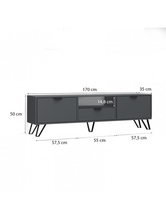 Έπιπλο τηλεόρασης Jasmine Megapap χρώμα γκρι 170x35x50εκ.