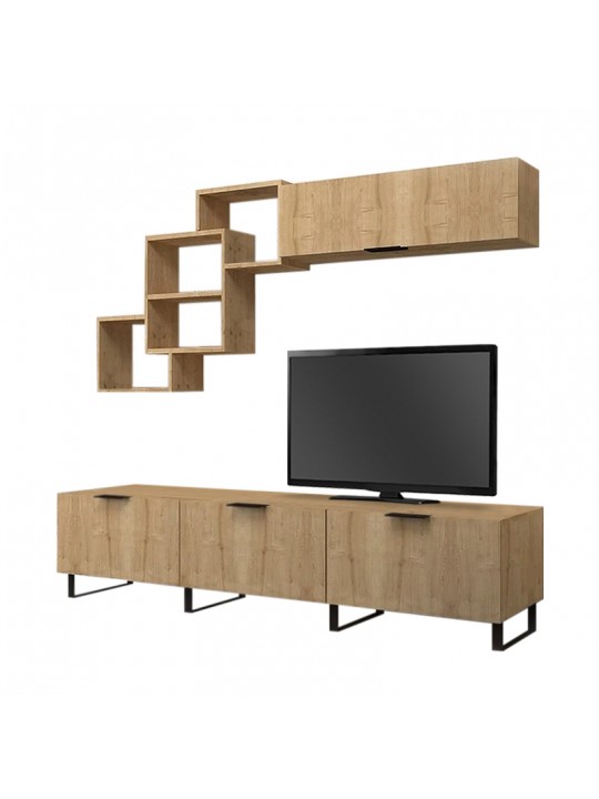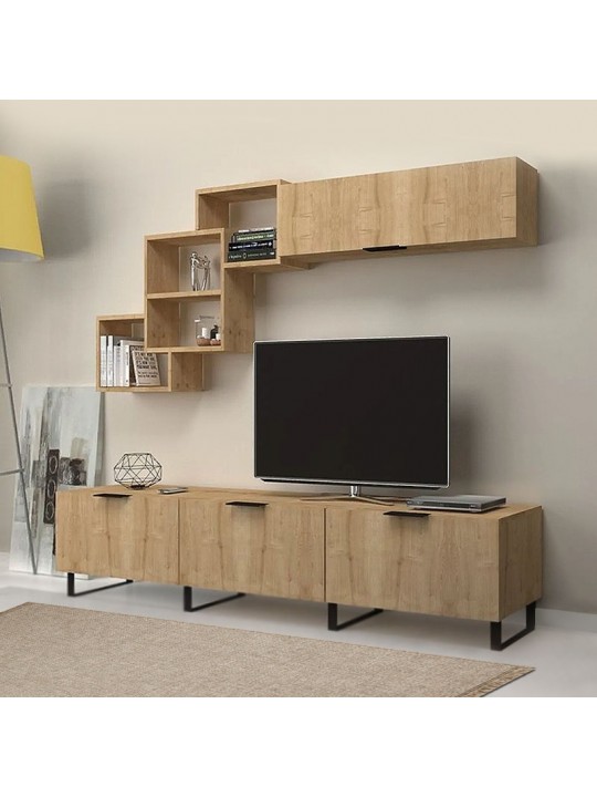 Σύνθεση τηλεόρασης Heydar Megapap από μελαμίνη χρώμα φυσικό οξιάς 210x35x50εκ.