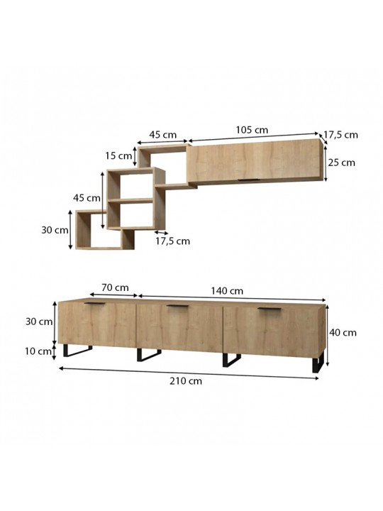 - Διαστάσεις επίπλου τηλεόρασης: Μήκος 210 x Βάθος 35 x Ύψος 50 εκ.