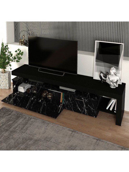 Έπιπλο τηλεόρασης Acnes Megapap χρώμα μαύρο - μαύρο εφέ μαρμάρου 220x40x52εκ.