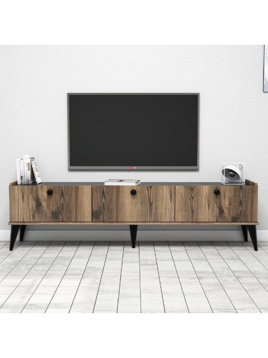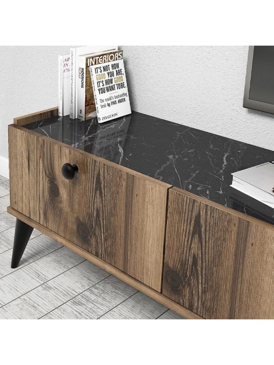 Έπιπλο τηλεόρασης Lidya Megapap χρώμα καρυδί - μαύρο εφέ μαρμάρου 180x35x49εκ.