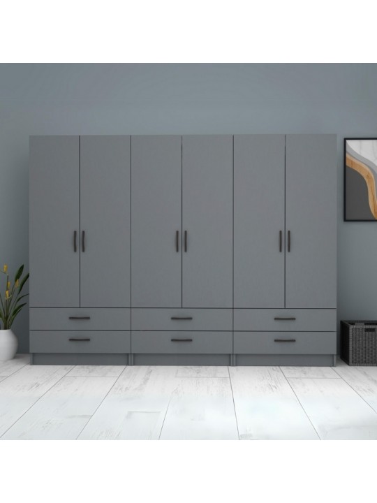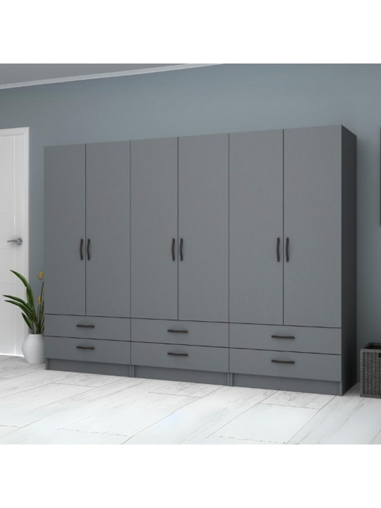 Ντουλάπα ρούχων Ricardo Megapap εξάφυλλη με συρτάρια χρώμα ανθρακί 240x61,8x181εκ.