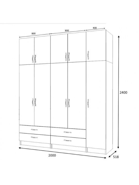 - Διαστάσεις ντουλάπας: Μήκος 200 x Βάθος 51,8 x Ύψος 240 εκ.