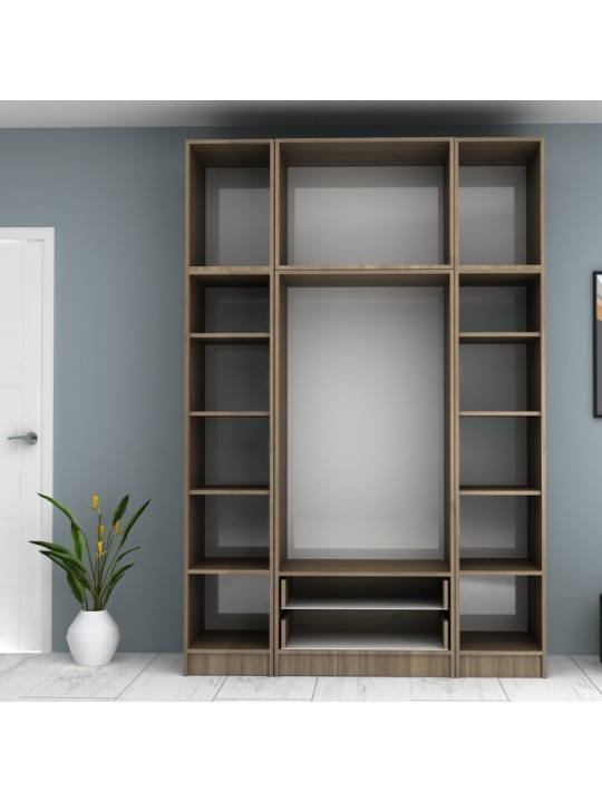 Ντουλάπα ρούχων Ricardo Megapap τετράφυλλη με πατάρι και συρτάρια χρώμα καρυδί 160x51,8x240εκ.