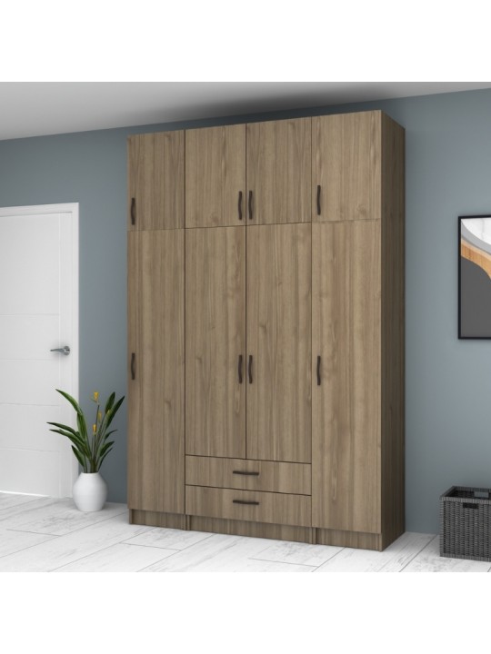 Ντουλάπα ρούχων Ricardo Megapap τετράφυλλη με πατάρι και συρτάρια χρώμα καρυδί 160x61,8x240εκ.