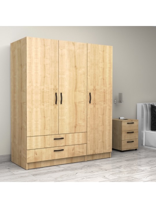 Ντουλάπα ρούχων Victoria Megapap τρίφυλλη με συρτάρια χρώμα φυσικό οξιάς 150x60x181εκ.
