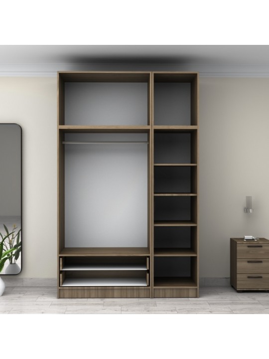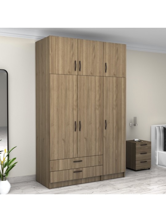 Ντουλάπα ρούχων Victoria Megapap τρίφυλλη με πατάρι και συρτάρια χρώμα καρυδί 150x60x240εκ.