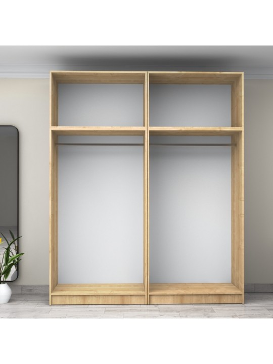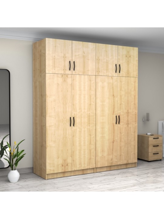 Ντουλάπα ρούχων Victoria Megapap τετράφυλλη με πατάρι χρώμα φυσικό οξιάς 200x60x240εκ.