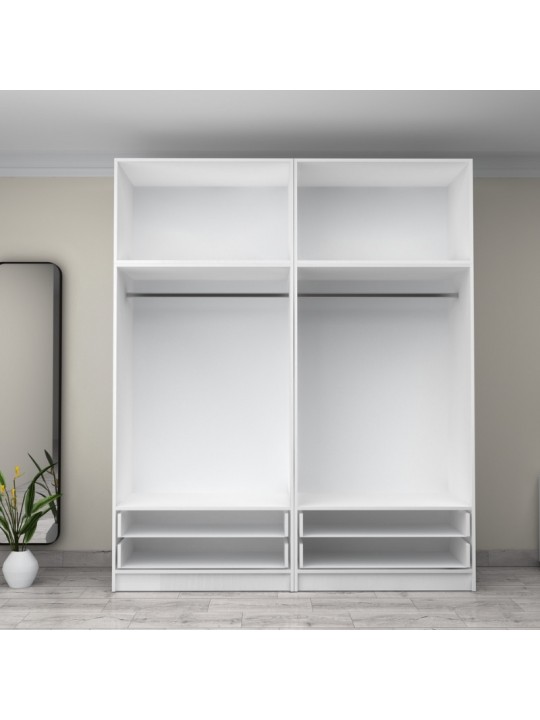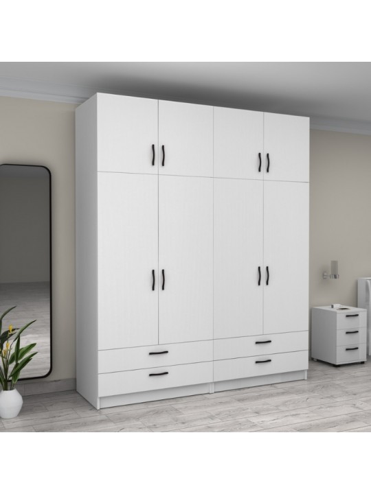 Ντουλάπα ρούχων Victoria Megapap τετράφυλλη με πατάρι και συρτάρια χρώμα λευκό 200x60x240εκ.