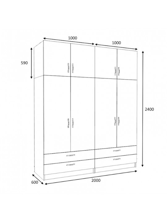 • Διαστάσεις ντουλάπας: Μήκος 200 x Βάθος 60 x Ύψος 181 εκ.