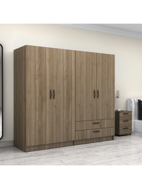 Ντουλάπα ρούχων Victoria Megapap τετράφυλλη με συρτάρια χρώμα καρυδί 200x60x181εκ.