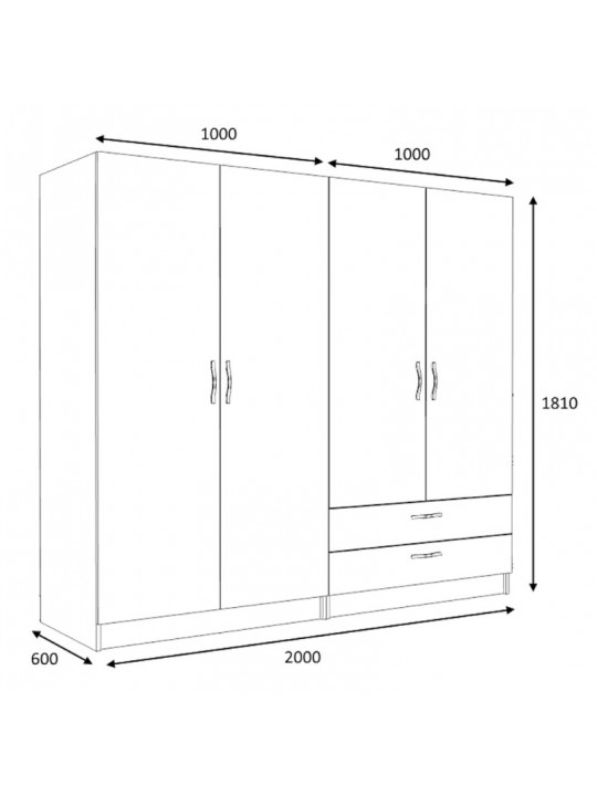 • Διαστάσεις ντουλάπας: Μήκος 200 x Βάθος 60 x Ύψος 181 εκ.