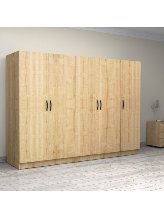 Ντουλάπα ρούχων Victoria Megapap πεντάφυλλη χρώμα φυσικό οξιάς 250x60x181εκ.