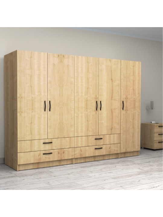 Ντουλάπα ρούχων Victoria Megapap πεντάφυλλη με συρτάρια χρώμα φυσικό οξιάς 250x60x181εκ.