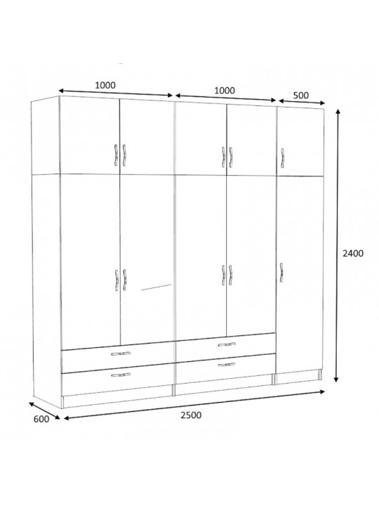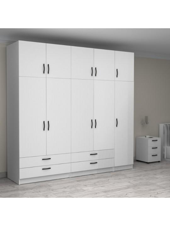 Ντουλάπα ρούχων Victoria Megapap πεντάφυλλη με πατάρι και συρτάρια χρώμα λευκό 250x60x240εκ.