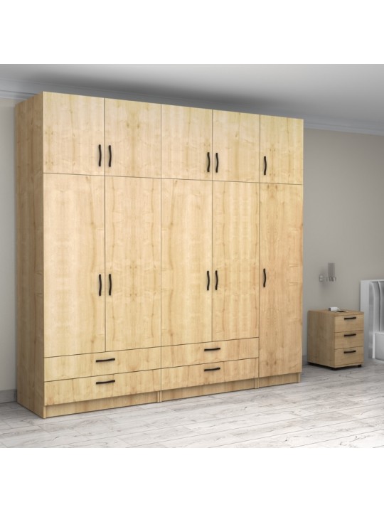 Ντουλάπα ρούχων Victoria Megapap πεντάφυλλη με πατάρι και συρτάρια χρώμα φυσικό οξιάς 250x60x240εκ.