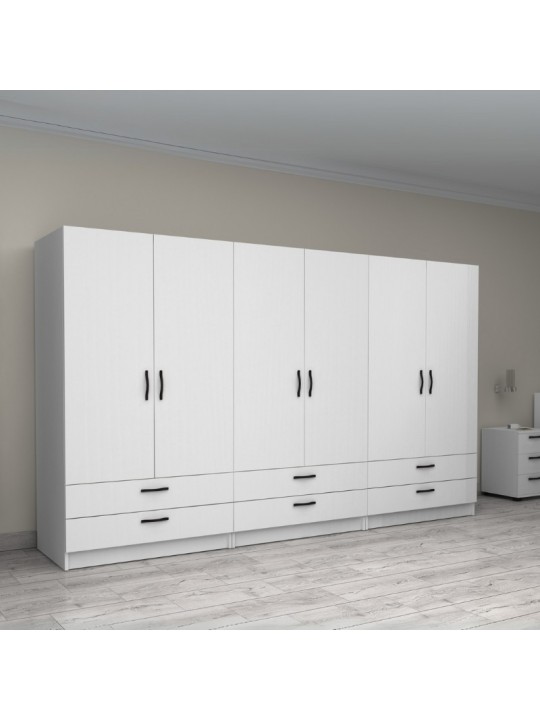 Ντουλάπα ρούχων Victoria Megapap εξάφυλλη με συρτάρια χρώμα λευκό 300x60x181εκ.