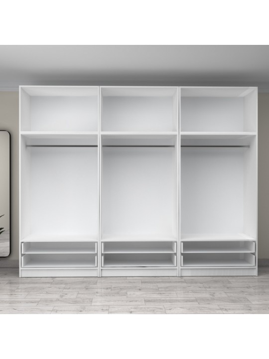 Ντουλάπα ρούχων Victoria Megapap εξάφυλλη με συρτάρια χρώμα λευκό 300x60x240εκ.