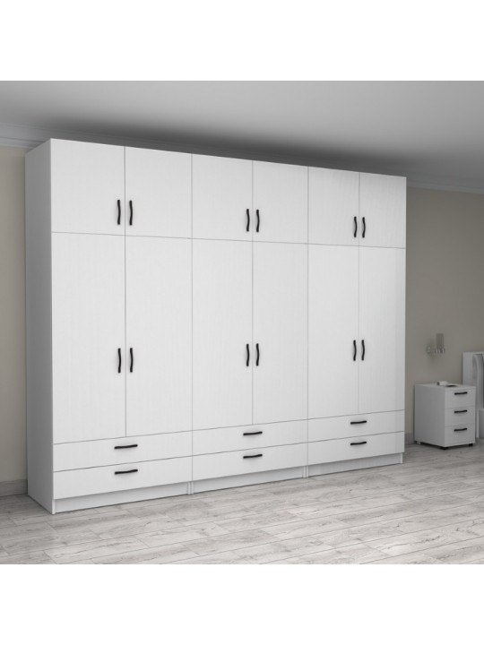 Ντουλάπα ρούχων Victoria Megapap εξάφυλλη με πατάρι και συρτάρια χρώμα λευκό 300x60x240εκ.