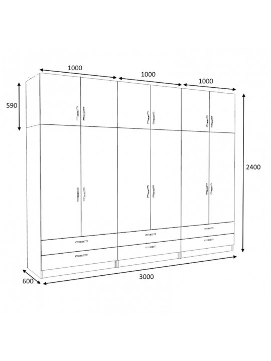 - Διαστάσεις ντουλάπας: Μήκος 300 x Βάθος 60 x Ύψος 240 εκ.