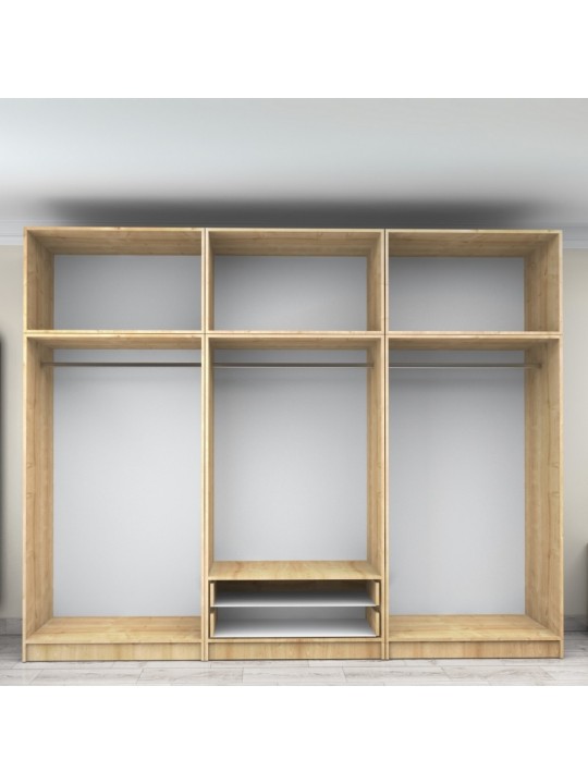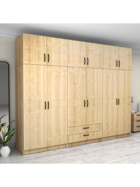 Ντουλάπα ρούχων Victoria Megapap εξάφυλλη με πατάρι και συρτάρια χρώμα φυσικό οξιάς 300x60x240εκ.