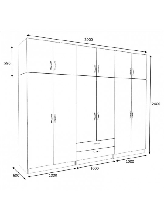 - Διαστάσεις ντουλάπας: Μήκος 300 x Βάθος 60 x Ύψος 240 εκ.