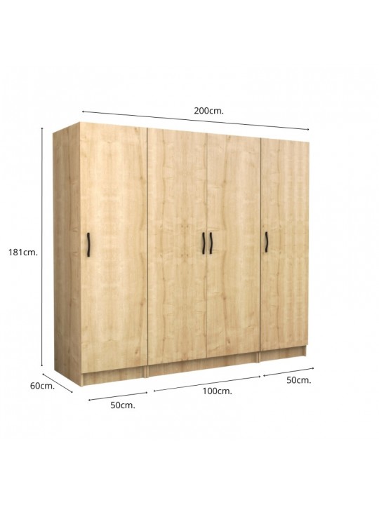 Ντουλάπα ρούχων Victoria Megapap τετράφυλλη χρώμα φυσικό οξιάς 200x60x181εκ.