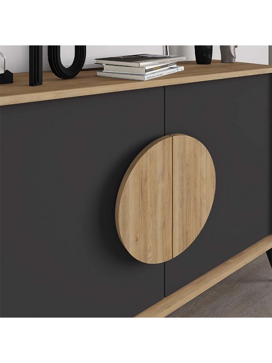Μπουφές Gora Megapap χρώμα sapphire oak - silky black 110x40x82εκ.