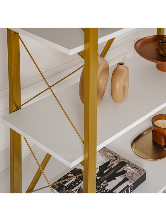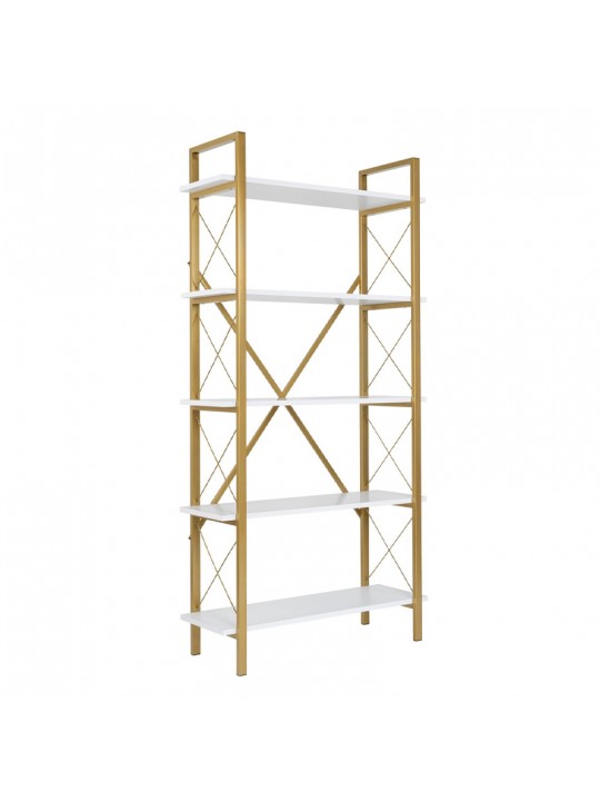 Βιβλιοθήκη Elysian Megapap χρώμα λευκό - χρυσό 90x33,5x180εκ.
