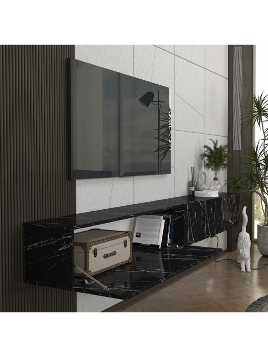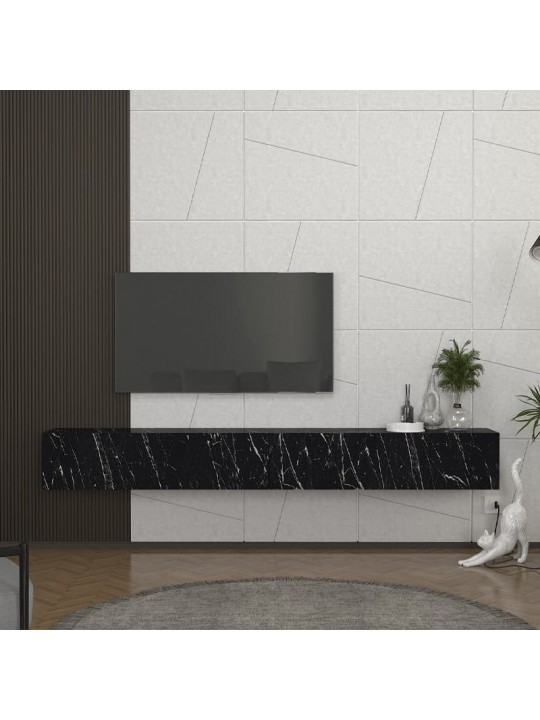 Έπιπλο τηλεόρασης επιτοίχιο Espanse Megapap χρώμα μαύρο εφέ μαρμάρου 241,8x31,7x30εκ.