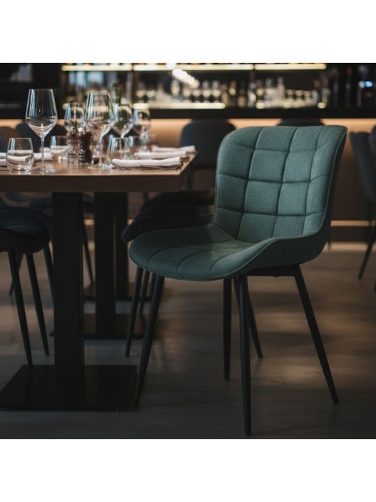 Η καρέκλα Chiara θα προσθέσει μοντέρνα κομψότητα και άνεση σε κάθε χώρο. Το ύφασμά της σε πράσινο χρώμα προσφέρει αισθητική άνεσης, ενώ τα στιβαρά, μαύρα μεταλλικά πόδια προσδίδουν μοντέρνα και σταθερή δομή. Είναι ιδανική για την τραπεζαρία ενός μοντέρνου σπιτιού, αλλά και για επαγγελματικούς χώρους όπως καφέ, εστιατόρια ή AirBnB - όπου η λεπτομέρεια και η αισθητική κάνουν τη διαφορά.
