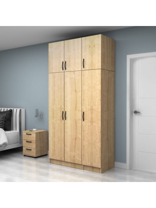 Ντουλάπα ρούχων Vivian Megapap τρίφυλλη με πατάρι χρώμα φυσικό οξιάς 120x51,8x240εκ.
