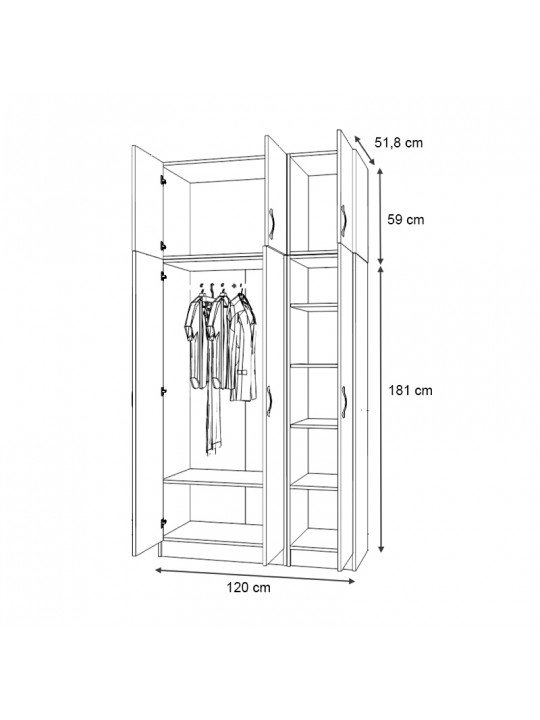 - Διαστάσεις δίφυλλης ντουλάπας: Μήκος 80 x Βάθος 51,8 x Ύψος 181 εκ.