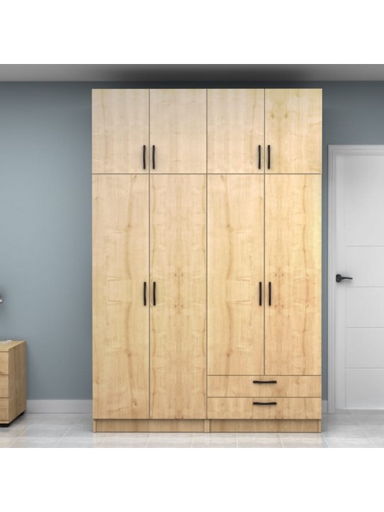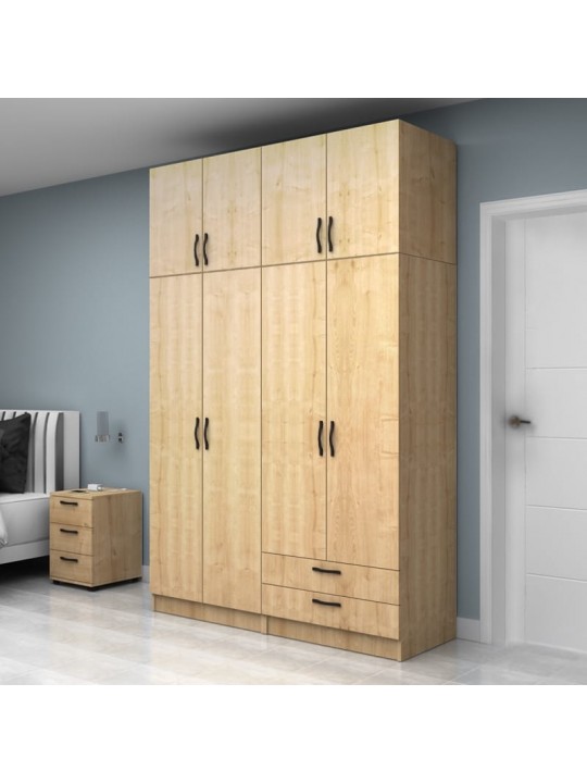 Ντουλάπα ρούχων Vivian Megapap τετράφυλλη με πατάρι και συρτάρια χρώμα φυσικό οξιάς 160x51,8x240εκ.