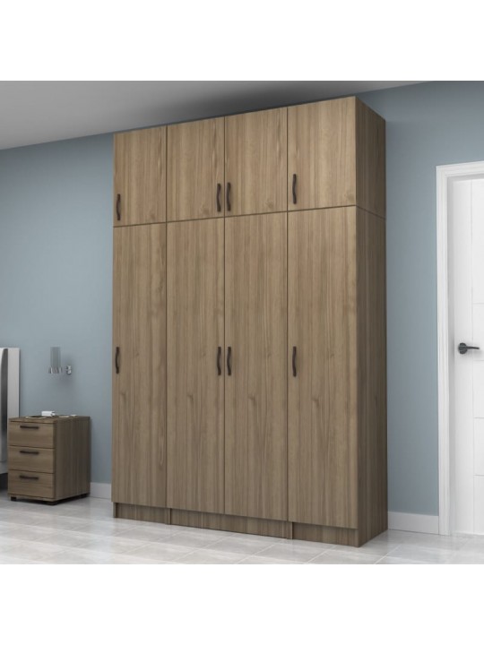 Ντουλάπα ρούχων Vivian Megapap τετράφυλλη με πατάρι χρώμα καρυδί 160x51,8x240εκ.
