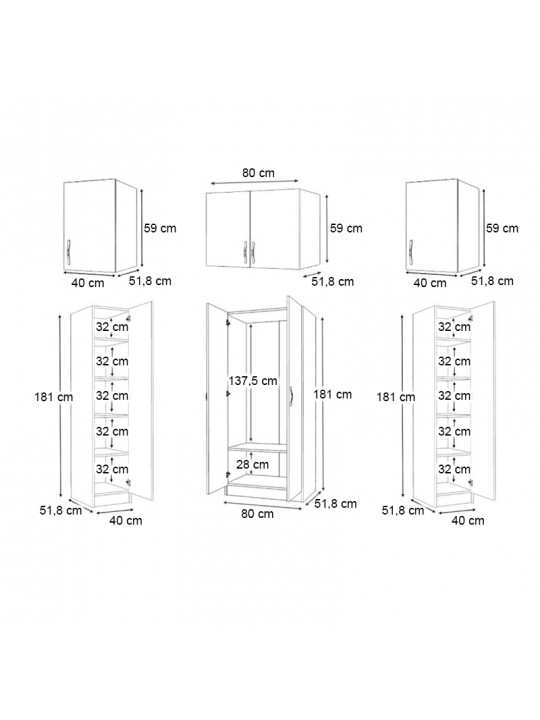 - Η ντουλάπα αποτελείται από μια δίφυλλη ντουλάπα με κωδικό GP028-0137,3 / δύο μονόφυλλες ντουλάπες με κωδικό GP028-0111,3 / ένα δίφυλλο πατάρι με κωδικό GP028-0110,3 και δύο μονόφυλλα πατάρια με κωδικό GP028-0112,3.