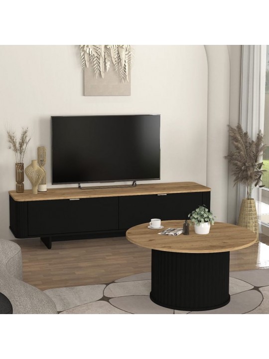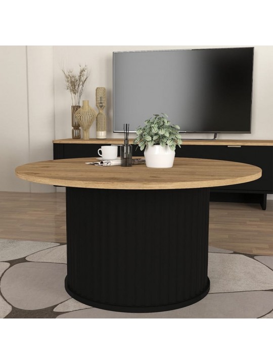 Τραπεζάκι σαλονιού Bohema Megapap χρώμα μαύρο - sepet oak Ø85x43,2εκ.