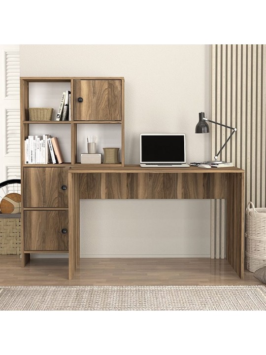 Γραφείο εργασίας Lesya Megapap αναστρέψιμο χρώμα καρυδί 159,2x59,6x141,2εκ.