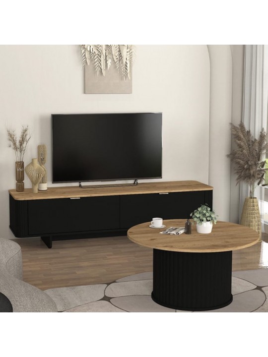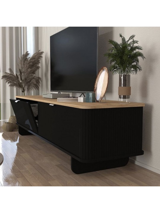 Έπιπλο τηλεόρασης Bohema Megapap χρώμα μαύρο - sepet oak 180x47x45,6εκ.