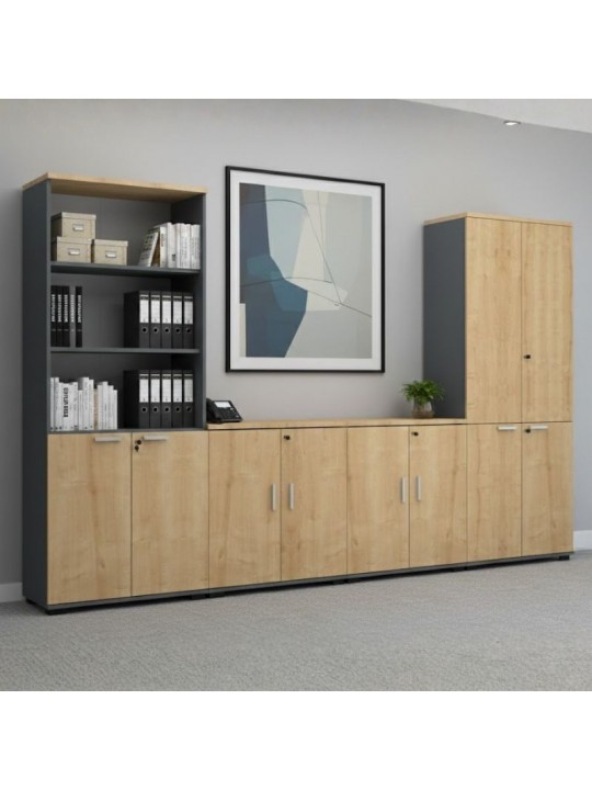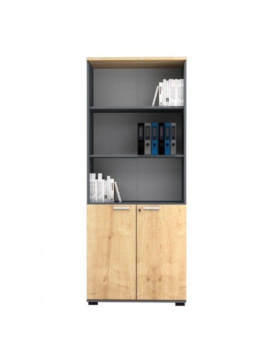 Βιβλιοθήκη γραφείου επαγγελματική Venturo Megapap χρώμα ανθρακί - φυσικό οξιάς 80x40x200εκ.