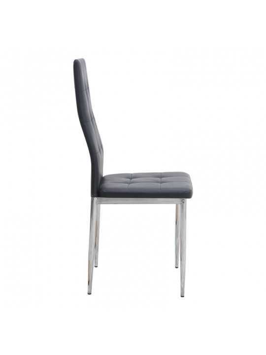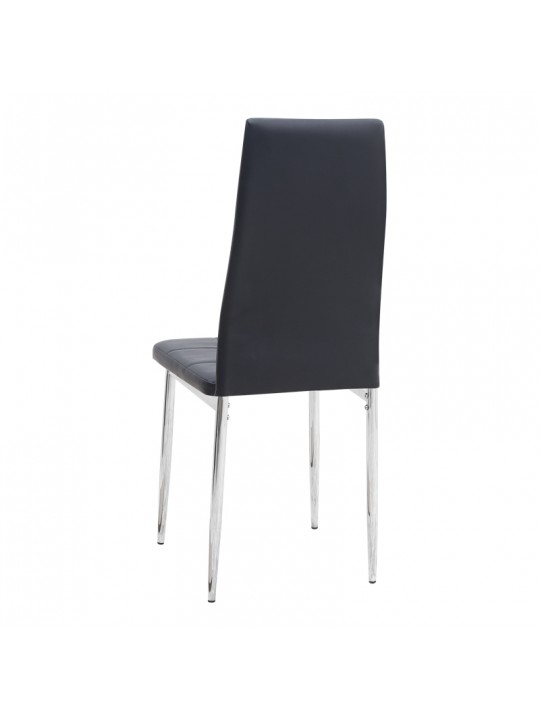 Η καρέκλα Rosa διαθέτει κάθισμα από τεχνόδερμα PU σε μαύρο χρώμα και μεταλλικά πόδια χρωμίου, προσφέροντας αντοχή και πρακτικότητα στην καθημερινή χρήση. Ο λιτός, μοντέρνος σχεδιασμός της την κάνει κατάλληλη για κάθε τύπο τραπεζαρίας, οικιακής ή επαγγελματικής, προσφέροντας μια διακριτική αλλά κομψή παρουσία στον χώρο.