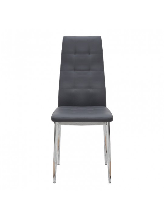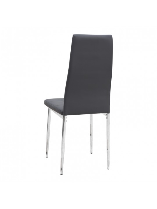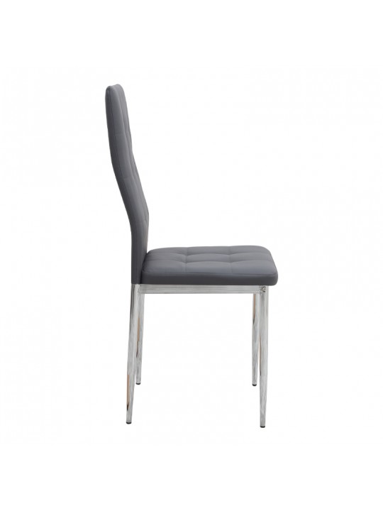 Η καρέκλα Rosa διαθέτει κάθισμα από τεχνόδερμα PU σε γκρι χρώμα και μεταλλικά πόδια χρωμίου, προσφέροντας αντοχή και πρακτικότητα στην καθημερινή χρήση. Ο λιτός, μοντέρνος σχεδιασμός της την κάνει κατάλληλη για κάθε τύπο τραπεζαρίας, οικιακής ή επαγγελματικής, προσφέροντας μια διακριτική αλλά κομψή παρουσία στον χώρο.