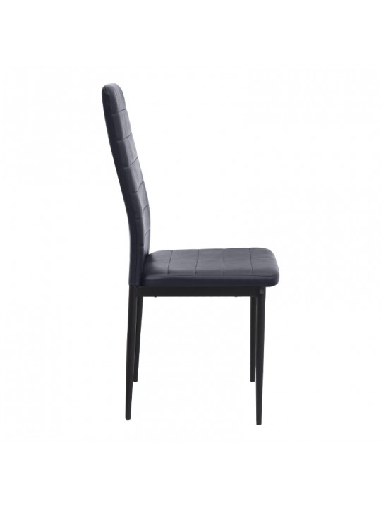 Η καρέκλα Rosa διαθέτει κάθισμα από PU σε μαύρο χρώμα και μαύρα μεταλλικά πόδια, προσφέροντας αντοχή και πρακτικότητα στην καθημερινή χρήση. Ο λιτός, μοντέρνος σχεδιασμός της την κάνει κατάλληλη για κάθε τύπο τραπεζαρίας, οικιακής ή επαγγελματικής, προσφέροντας μια διακριτική αλλά κομψή παρουσία στον χώρο.